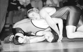 Thoroughly whipped up, the hometown crowd got behind junior Andy Wills, who had a challenge at 160 pounds. Frustrated through the first round by the Tigers’ Ryan Bennett, who stayed clear of Wills’ holding strength on the mat, Wills corralled his opponent 32 seconds into the second period to record the fall.