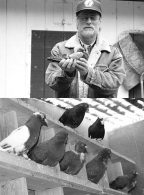 But he doesn’t care whether he is a winner or not. He just loves working with pigeons — something he has done since he was 10 years old — and is in his element when he is talking about his rollers and explaining their unusual airborne behavior.