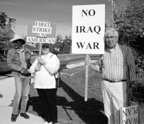 But the stance of the Bush administration to consider attack Iraq is so appalling to Tingstad that he took to a small-town street corner with a simple sign in protest. It’s message was simple. It had only three words: No Iraq War.