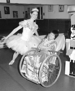 WDT choreographed Raina into the opening party scene of “The Nutcracker” as a cousin, and Gary Kay fixed up a new wheelchair seat with a head support especially to fit Raina.