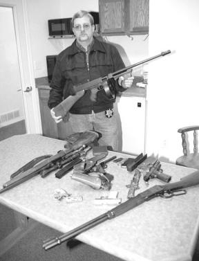Recovered was a 1927 model Thompson machine gun, .30-06-caliber rifle, Remington .30-30, Colt 45 German Luger, .25 semi automatic derringer, two shot derringer, several other pistols and two sharp knives, with 8-inch blades.