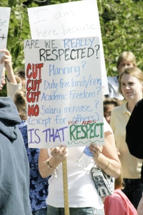 “My colleagues are serious about getting a fair deal from the district. We have a belief in the future of quality education, but money is a powerful re-enforcer in our culture. Teachers on the island aren’t keeping pace with others in the state and that’s why we’re out here picketing,” he said.