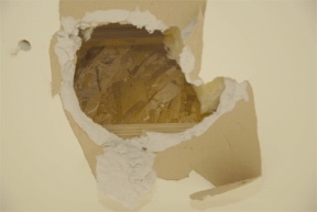 “They obviously are knuckleheads. They drilled some holes and pulled down the sheetrock,” she said. “Maybe they thought they were going to go through the floor.”