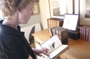 Priscilla Lowry-Gregor peruses one of the many rare books sold in her shop which feature the natural history of the Age of Discovery.