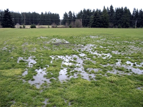 The drained field feels firm and solid underfoot, perfect for making a quick kick to the goal.