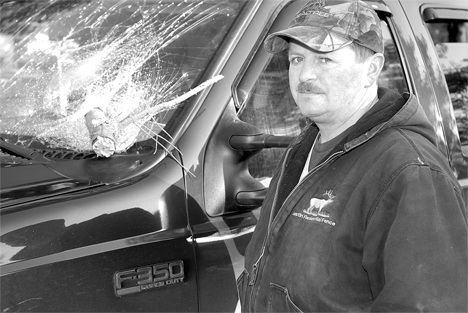 Jim Young and his wife were driving home on Scatchet Head Road when the top of a tree slammed into his Ford truck’s windshield.