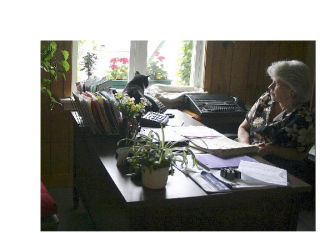 Randy does some bird-watching on the desk of Marlyne Ray. Randy and fellow city cat Austin call Langley’s city hall home.
