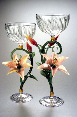 “Lily Goblets” by glass artist Janis Miltenberger demonstrate her affinity for mixing the decorative with the functional in art.
