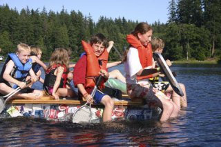 They weighed themselves and the wooden planking, then calculated how many containers they would need to float the weight of all nine of them, including their life jackets, paddles and hair scrunchies. The rule of thumb was one pound displaces one pint of water.