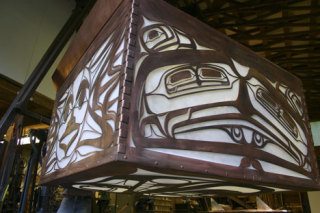 The artist was recently commissioned by members of the Jamestown S’Klallam Tribe’s 7 Cedar’s Casino to create the ultimate sculptured light centerpiece for the casino’s new Longhouse Market on Sequim Bay.