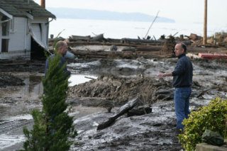 Since the island has no railroads, it had to be something else; a roaring, rushing wall of mud and water caused by a plugged culvert on a nearby hill and the backup of Glendale Creek, swollen from recent rains. Thousands of tons of mud filled with rocks and trees came rushing through the shoreside community after Glendale Road could no longer block the rising water and gave way.