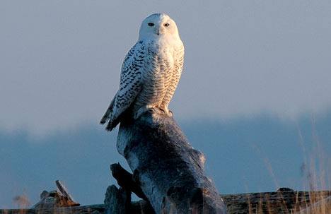 Snowy Owls are harder to find, fewer in number and less dependable visitors. These birds breed on the tundra and, depending on the availability of their winter prey, a few straggle south and settle into open habitats, such as the driftwood-laden spit near Crockett Lake. If a Snowy Owl finds a good territory, it often stays put for the winter.