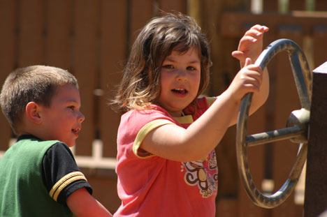 Hunt watched as his kids, Lilliauna and Caleb, played on the slider and took a magical mystery tour on the new make-believe boat.