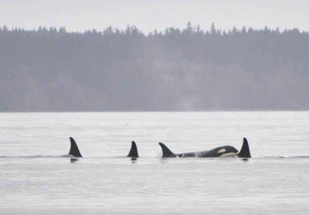 About noon on Monday, orcas were spotted off Greenbank, he said, and later six were seen headed south around Fox Spit.