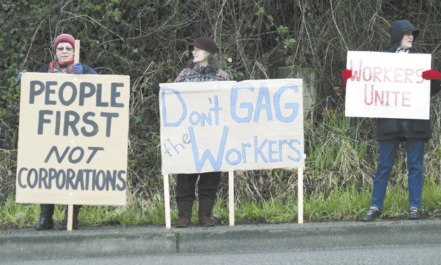 Tamler said the local demonstrators from throughout Whidbey Island and as far away as Bellingham peacefully lined the walkway just outside the ferry terminal for two hours, beginning at 3:45 p.m.