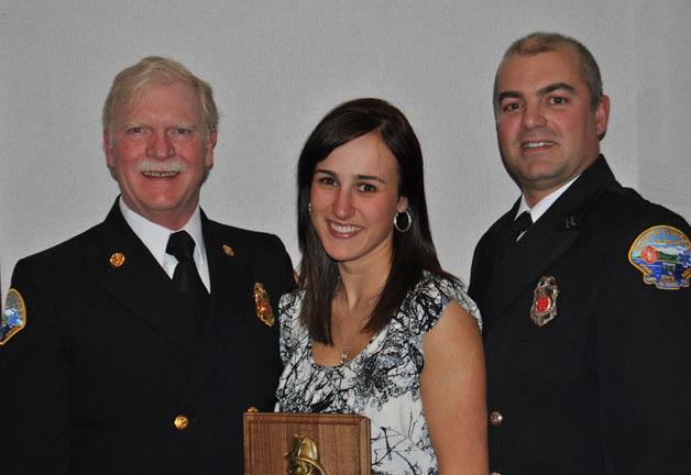 Leah Hughes was named Fire Fighter of the Year and her father Forrest Hughes (right) received the Carl Simmons Award at Saturday’s Island County Fire District 3’s annual awards banquet. With them is Fire Chief Rusty Palmer.