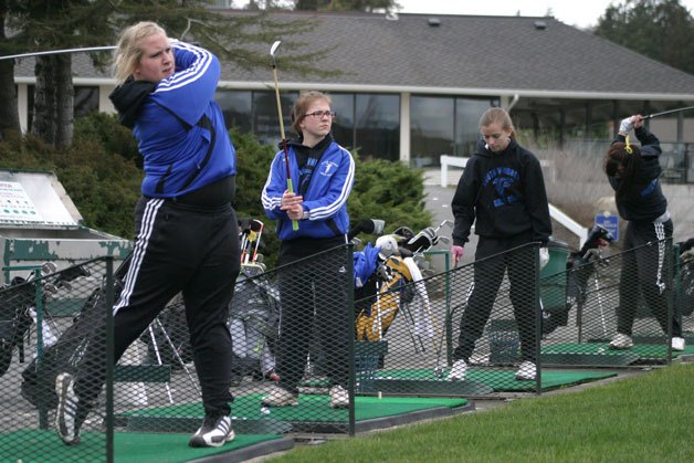 Jenna Kaik tees off at Useless Bay Golf and Country Club during practice. Behind her