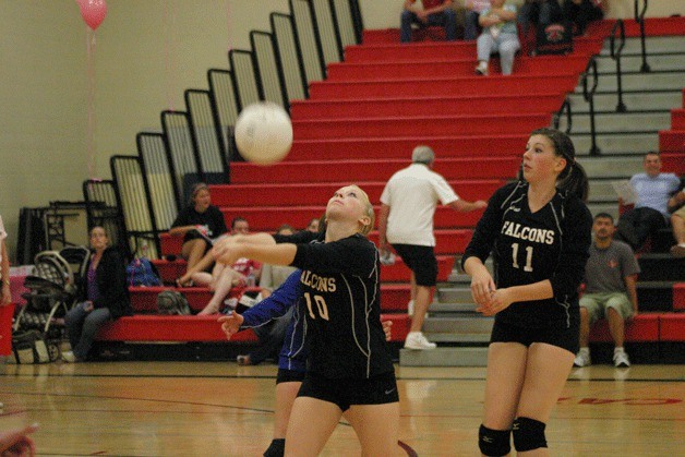 The Wildcats won the first two points on consecutive Falcon hits into the net. South Whidbey gained the serve on a long kill by Marvin that went out. Falcon senior setter Emily Houck aced to tie at 2-2, then hit a kill long and out to lose the lead.