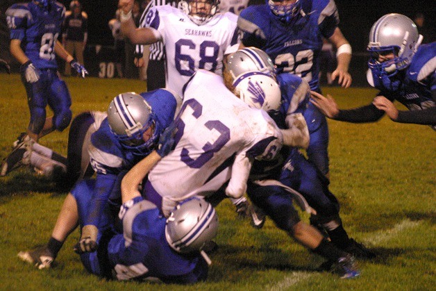 In the 10th and final game of the Falcon football season, South Whidbey (3-4 Cascade Conference, 4-6 overall) was caught on its heels from the first play.