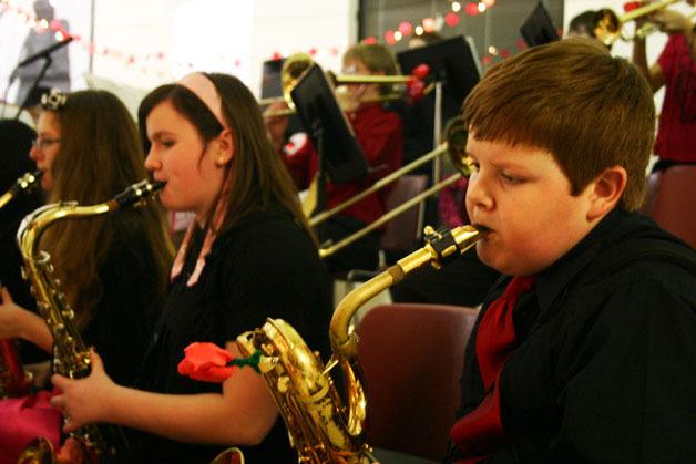 Sean Drake jams on his sax, along with Mara Bush and Catherine Ballestrasse during the recent Sweetheart Ball held at South Whidbey High School.