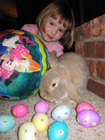 On one particularly sunny day, Sheldon placed Floppy outside in his cage, but then forgot about him. By the time she remembered, he had escaped and was nowhere to be seen. She figured the defenseless bunny was gone forever. When she tried to break the sad news to her daughter, she wouldn’t believe it. Finally Sasha pointed at the glass door, where Floppy was standing on his hind legs and pawing the glass to get in.