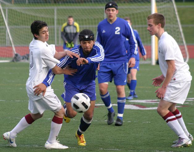 South Whidbey was playing without three starters, including senior goalkeeper Garret Thomson, while the school was on spring break. In Thomson’s place, junior Andrew Holt protected the net and held the Red Wolves, a squad filled with fast, effective passers, to a scoreless first half.