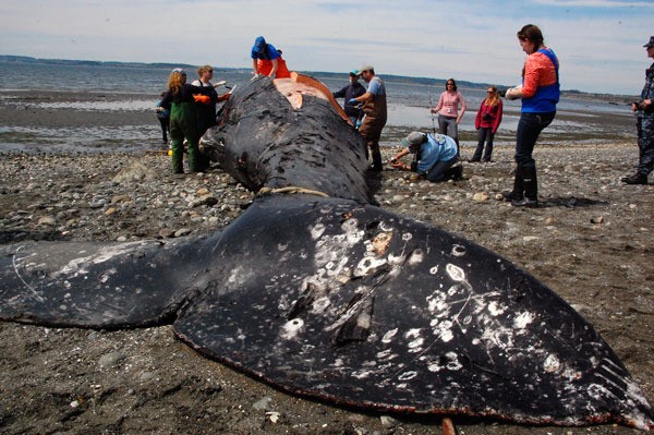Several groups, including Cascadia Research, the state Department of Fish and Wildlife and the Central Puget Sound Marine Mammal Stranding Network spent much of Monday necropsying the whale.