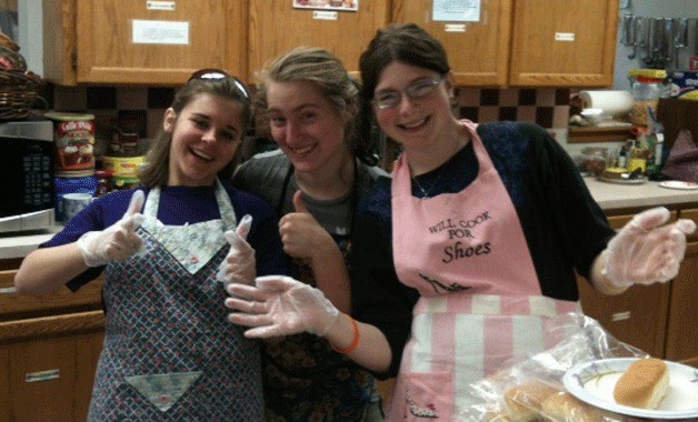 School’s out for summer. But that doesn’t mean the work stops. Three students, Ariana Abrahams, Annika Riise and Sadie Greene, decided to volunteer in the Soup Kitchen serving soup, beans and hot dogs, along with smiles.