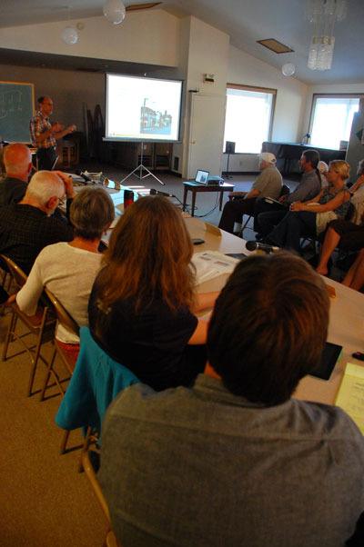 He displayed images that ranged from a central portion of the street encompassed by pavers, which might make clear the concept of a community gathering place, to street gateways. The entrance at Cascade might be marked with a viewing platform on the bluff while Second Street at Anthes could be divided with a central median of trees or landscaping.