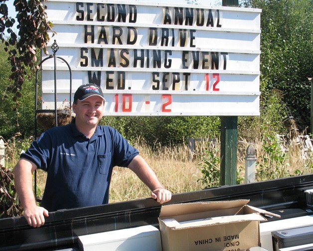 Lincoln Computers in Clinton sponsored a one-day hard-drive smash event this week.