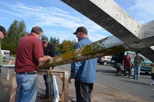 Matt Nichols, CEO of Nichols Brothers Boat Builders, threw the cross section in the back of his truck and sped off to the yard to make repairs. At the same time, members of the congregation and other volunteers attacked the legs with angle grinders.