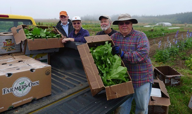 Rotary Club of South Whidbey members Russ DeWolfe, Linda Senff, Terry Rose and Marvin Senff show off some of the produce gleaned from the Agriculture Training Center at the Greenbank Farm. Rotary Club members estimate they have collected about 1,000 pounds of food this year that benefited South Whidbey’s Good Cheer food bank.