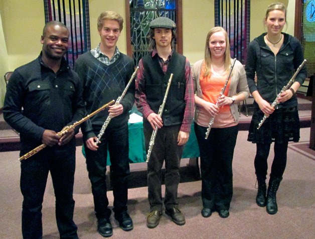 Demarre McGill, principal flute of the Seattle Symphony, spent Tuesday afternoon working with area flute students and flute enthusiasts at Langley United Methodist Church. McGill is on Whidbey Island performing with the Saratoga Orchestra as guest soloist for their “Classically Speaking” concert at 2:30 p.m. Sunday, Feb. 3 at South Whidbey High School.