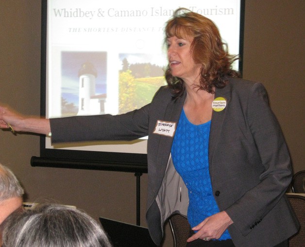 More than 35 people listened as Whidbey and Camano Islands Tourism gave an update of her agency’s efforts.