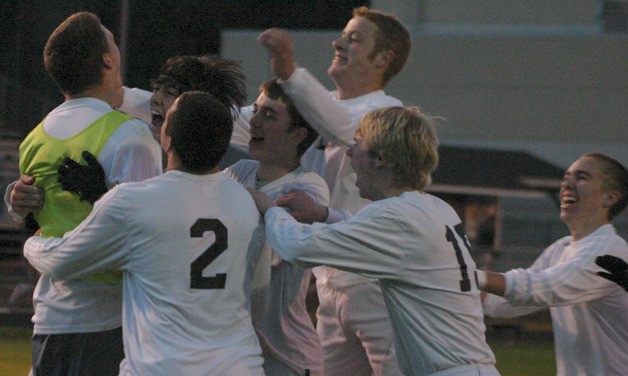 South Whidbey struck first when Coupe drove the ball into the lower left corner past Knight keeper Logan Griffis. The Falcons erupted at the midfield line and sent their two-dozen or so fans into a frenzy.