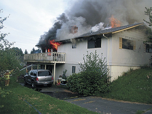 South Whidbey Fire/EMS threw everything it had at the stubborn blaze, but even after 20 minutes of battle flames were still licking above the roof of the house, located at 460 Anthes Avenue, about block up the hill from the United Methodist Church.