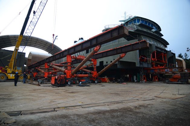 Before landing the contracts, some critics debated whether Nichols Brothers had the space to build ships of this size. The superstructure of the Olympic Class, 144-car boats weigh in at 1,500 tons — 3,000,000 pounds. Once complete, they’ll measure 362 feet long, 83 feet wide and be capable of speeds of up to 17 knots, according to the Nichols Brothers website.