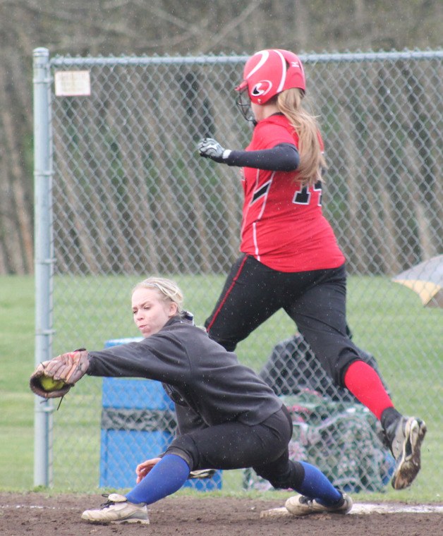 Facing Coupeville’s top batter, Falcon freshman Kacie Hanson started off the seventh inning with a strikeout. The following three batters reached first base to load the bases. That set up a two RBI double to left-center field to break the tie and score the go-ahead runs that ultimately proved to be more than enough to beat the Falcons.