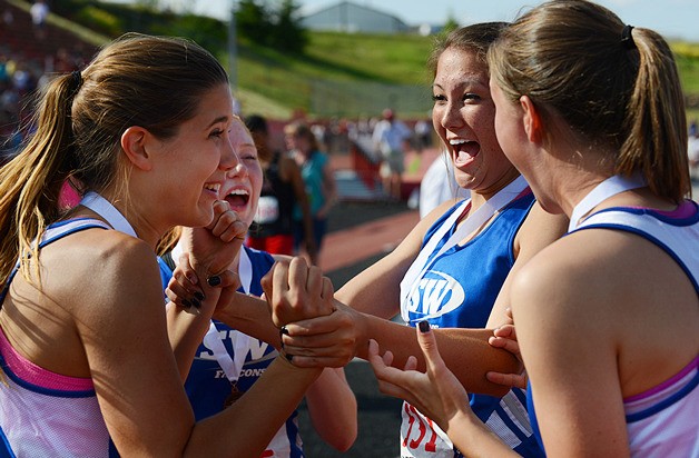 Madi Boyd, Jaime Rodden, Mackenzie Hezel and Maia Sparkman had just ended their careers as South Whidbey High School athletes by making a lasting mark in the record books by breaking the 18-year-old record — essentially when these four were born — by 0.04 seconds. Less than four seconds separated them from the first-place Meridian team. So they understandably savored the moment on the track at Eastern Washington University on May 31.