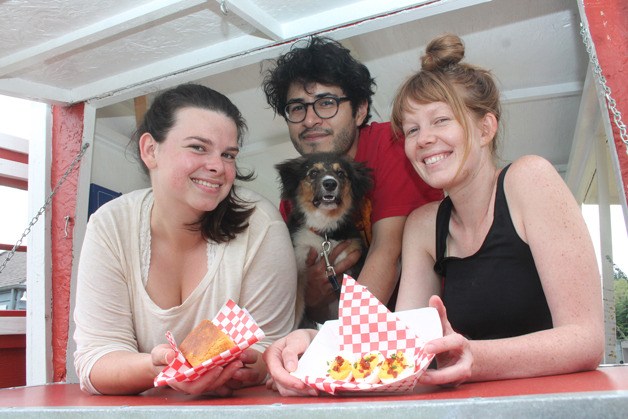 Laura Hudson, Victor Ramos and Emily Wandress will serve Lunch Box dishes evocative of something mom and dad made. Walk up to the Lunch Box for a serving of rosemary cornbread, braised vegetables, mint strawberry lemonade and macaroni and cheese with optional pulled pork and peas. The goal for their first take at running a rolling restaurant is to get as much of their ingredients as possible from Whidbey Island, going so far as to use lettuce, carrots, rhubarb and chard from their own garden off Heggenes Road. Most of their produce is from farms in Clinton and Freeland. And that’s a model they want to continue with their food truck: knowing from whom the food comes.