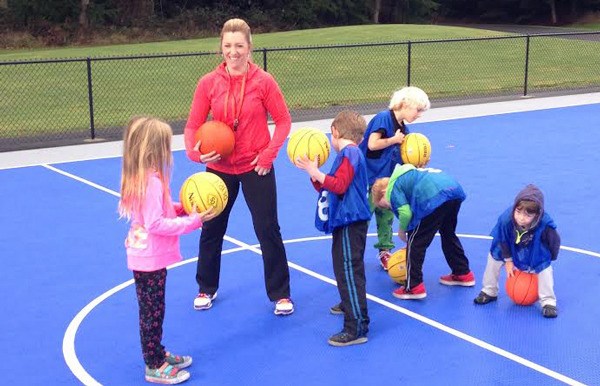 Doug Coutts, member of the Rotary Club of Whidbey Westside and director of South Whidbey Parks and Recreation District, emceed. Little Dribblers coach and parks district basketball program coordinator Erin Mackie-Ratcliff demonstrated the proper way to dribble across the basketball court.