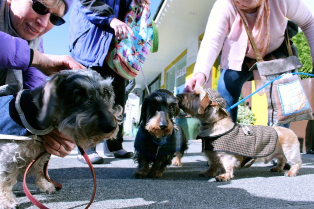 Elsewhere, a trio of regular Mystery Weekend detectives from South Whidbey were stalled in their mission by the newfound celebrity status of their pooches. Annie Zeck, Maryl Douglas and Helen Spector were stopped on First Street as people snapped pictures of their wire-haired dachshunds, Petunia, Daffodil and Hemingway, respectively. Each dog donned a plaid jacket and hat in the style of Sherlock Holmes as the Dachshund Detective Agency.