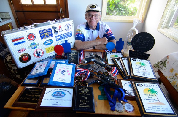 Five targets, five shots, three seconds or less — that’s his average. Not only is that swift enough to rank him among the world’s quickest senior shooters, but it’s earned the Sunlight Beach-area resident dozens of national and international awards over his 15-year competitive career, so many that he’s lost count. Some hang on his walls, others lay in forgotten dusty stacks on the living room table and some are who knows where.