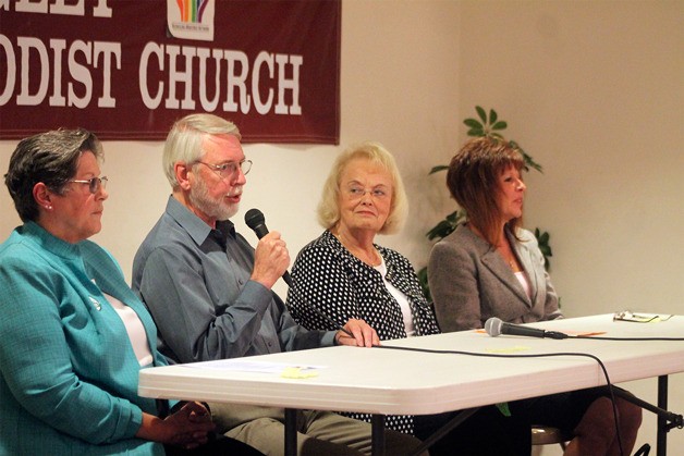 Before a crowd of about 70 people at Langley United Methodist Church’s Fellowship Hall, four candidates for two spots on the Whidbey General Hospital board of commissioners and the two Langley mayoral candidates responded to inquiries about their leadership style, what they want to improve and change, and where they want to take their respective agencies in the coming years.