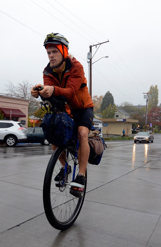 For example, he’s already pedaled more than 14,000 miles in all — a unicycling world record, if he ever gets around to turning in the paperwork to Guinness. He’s also given talks at elementary schools in the Northwest state, British Columbia and Alaska, and will continue to do so as he heads east.