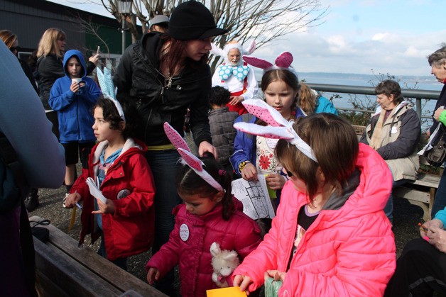 Burr led a troop of tots donning bunny ears and chanting “Free the bunnies! Free the bunnies! Free the bunnies!” A cool, clear day proved a boon to the event’s ranks. An official number of at least 1,177 people, based on the number of tickets sold, swarmed Langley’s streets and shops in search of clues of who did the dastardly deed. One ticket was one answer sheet, and often several people played together on one sheet, Langley Chamber of Commerce Executive Director Michaleen McGarry said.