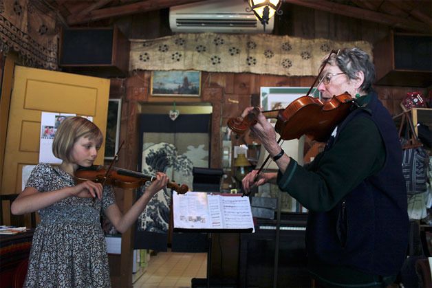 As the owner of Island Strings, she can regularly be seen in the living room of her woodsy cabin home with a group of children wielding stringed instruments, either bowing their strings or singing along to a kids’ jingle. “Frère Jacques, Frère Jacques…” they sing in unison. This is the Suzuki method of music education, and it’s one of the many facets that will be on display at the South Whidbey Acoustic Music Festival.