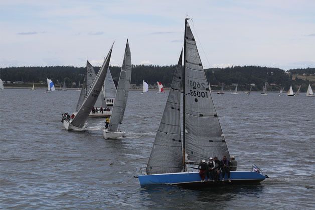 Competitors in the 2015 Whidbey Island Race Week race their sailboats through Saratoga Passage. The 34th anniversary of Whidbey Island Race Week will begin Monday