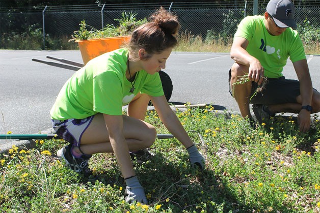 At the elementary school, the students and Merino weeded a flower bed, placed mulch and cleared additional pockets of Scotch broom. Merino said the crew consisting of Damerau, Warwick, Ford and LeRoy spent three to four hours per work session, beginning at around 9 a.m. and wrapping after noon. They racked up 20 hours last week.