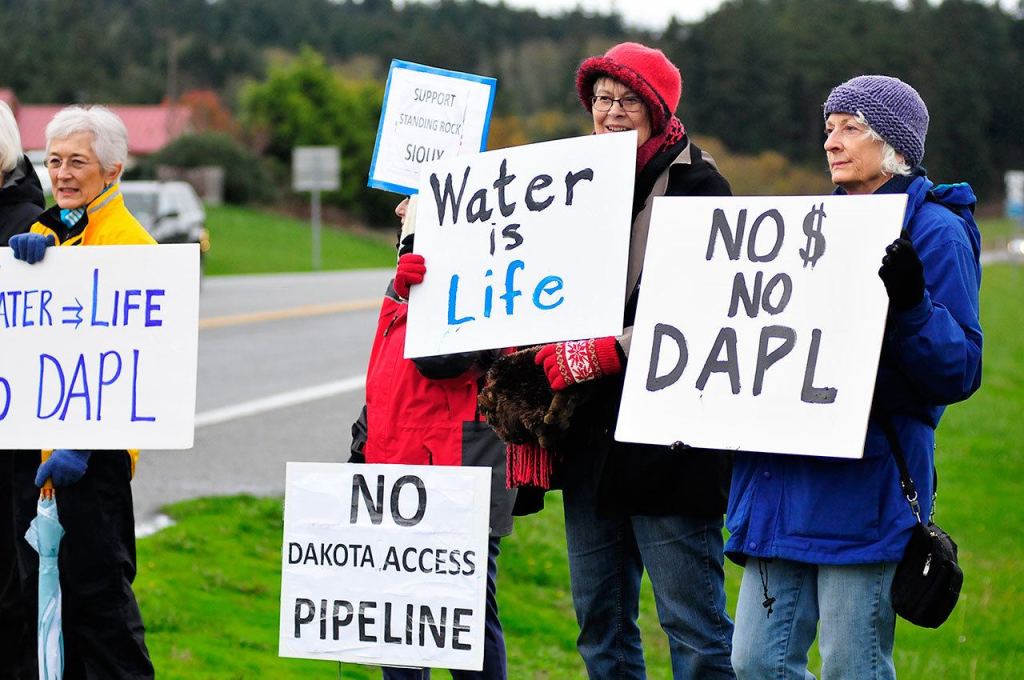 More than 100 island residents converged on Coupeville Tuesday to rally in support of the Standing Rock Sioux Tribe’s efforts to halt the Dakota Access pipeline.
